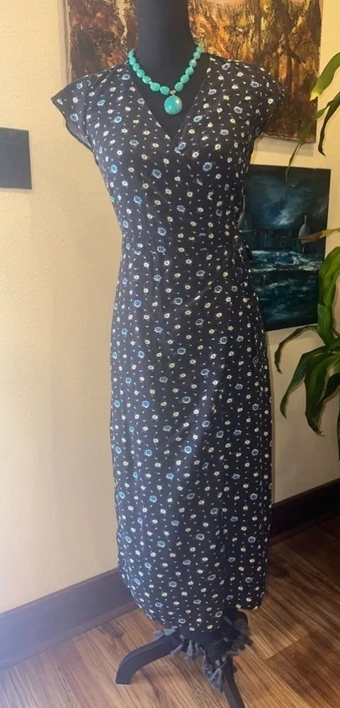 EUC J.CREW Mercantile Floral type Wrap Dress Midi Daisy Black Blue SzXXS ALL SALES ARE FINAL S... Show more