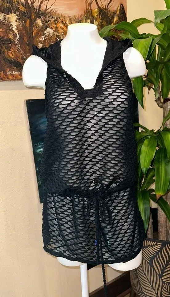 EUC Jordan Taylor Honeycomb Tunic Hoodie cover up Sz L Black Size L - $15 - From Francesca