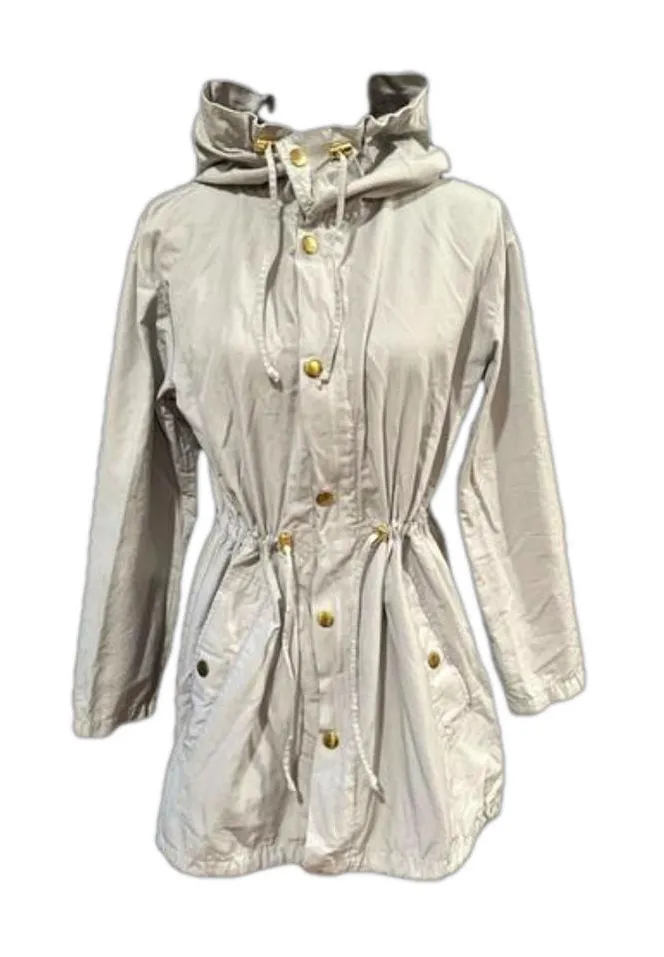 EUC Live a Little Tranch coat with waist strings and hood Sz M Silver Size M - $20 - From Francesca