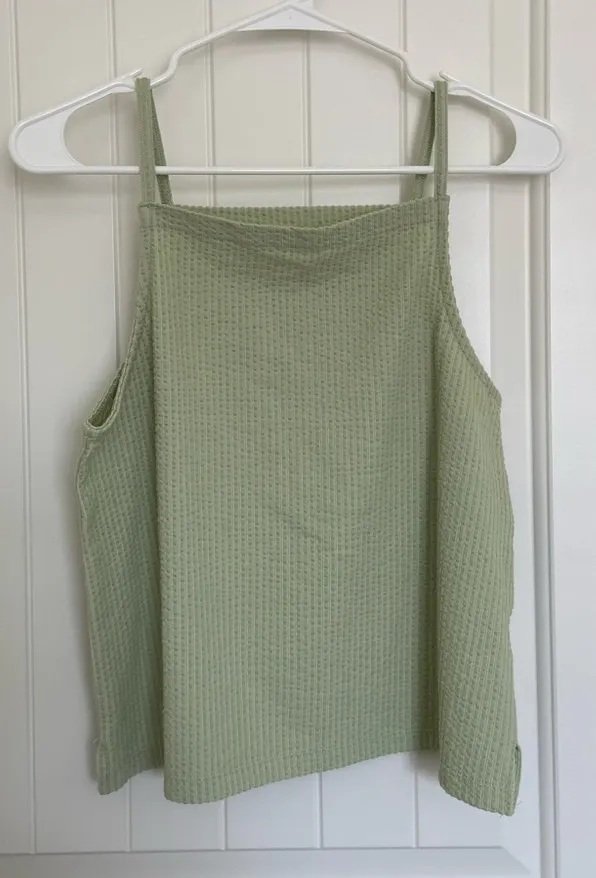 Women’s Madewell high neck tank. Top is a light green color with a ribbed texture material. Size XS.... Show more