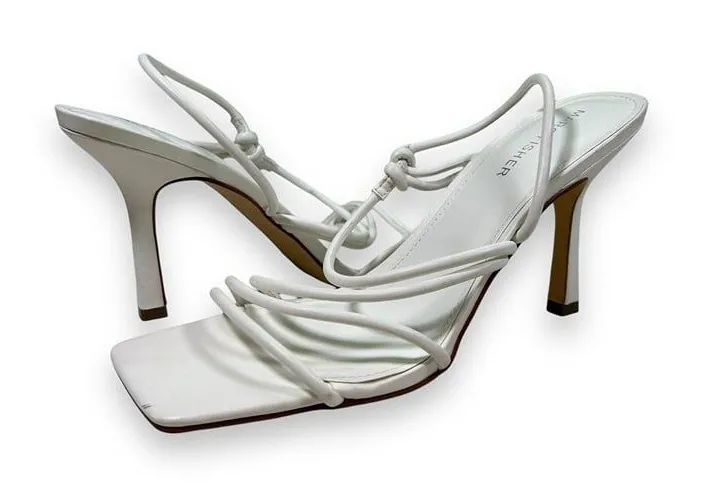 EUC Marc Fisher Dareta Faux Leather Square Toe Strappy Heels Womens 10 Open toe heels in white, per... Show more