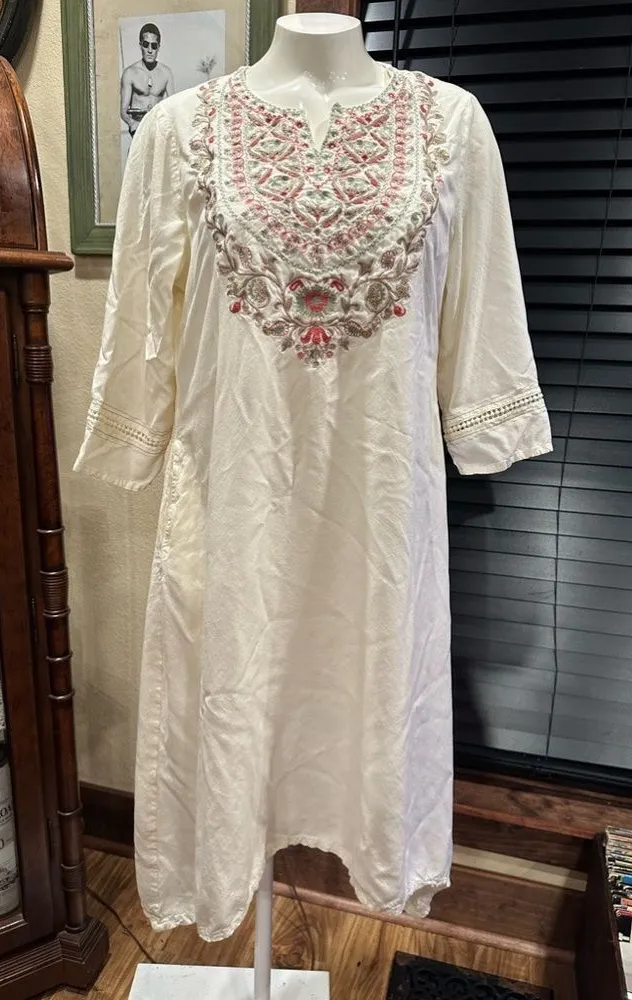 EUC Max midi dress embroidery front and sleeve rim off white cotton Size L - $30 - From Francesca