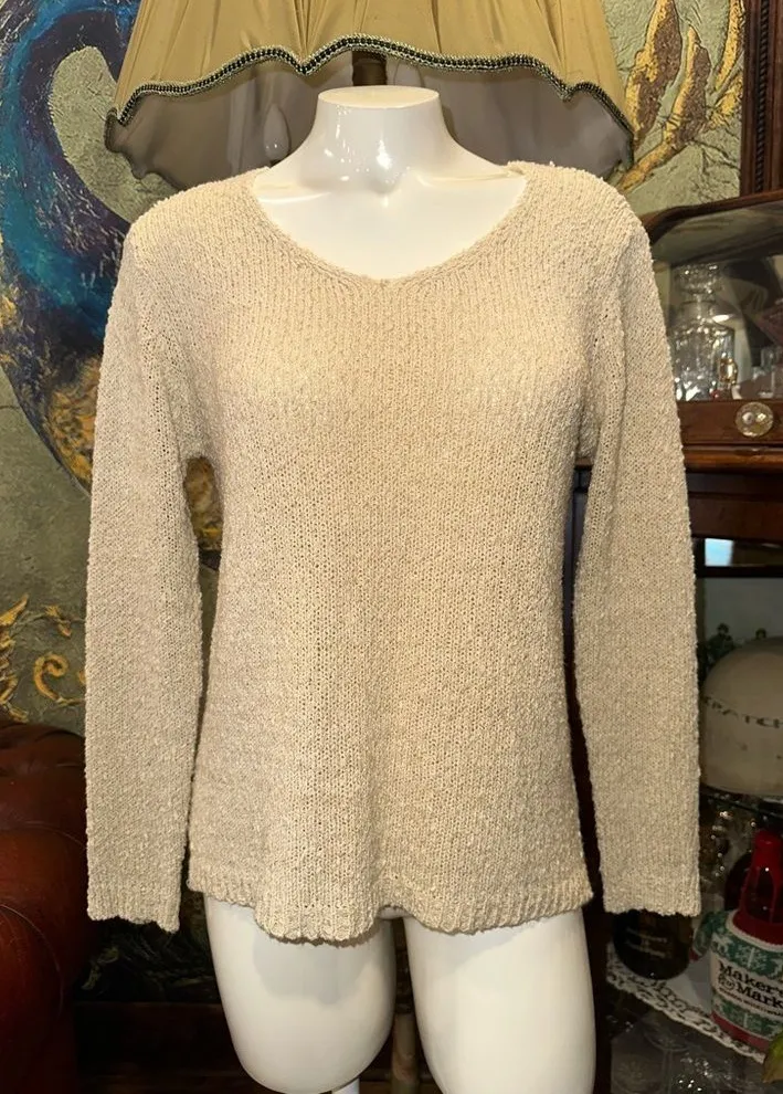 EUC MIRACLE CITY BOHEMIAN SWEATER KNIT 🧶 NATURAL COLOR WITH CROCHET BACK Tan - $30 - From Francesca