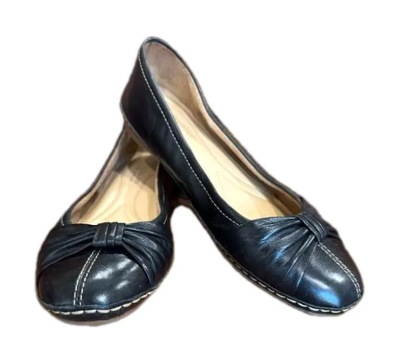 EUC NATURALIZER black flat ballerina leather shoes with white stitches Sz 6 - $30 - From Francesca