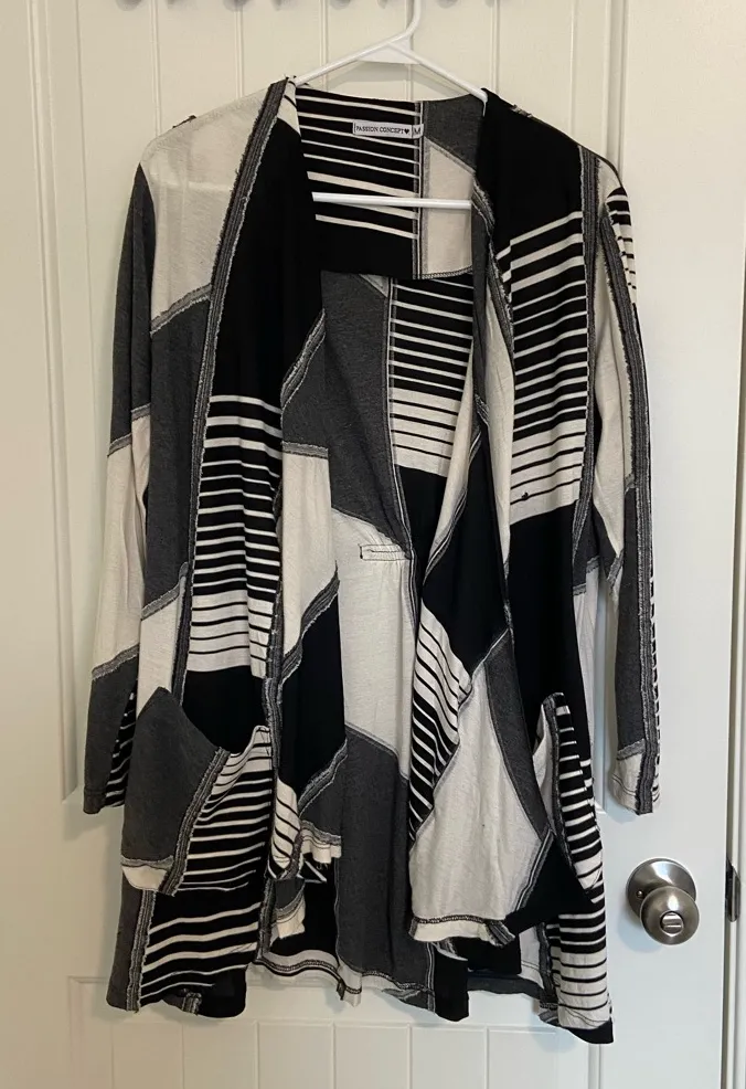 EUC Passion Concept women’s black white patch patterned cinched open cardigan M‎ Size M - $27 - From Emily