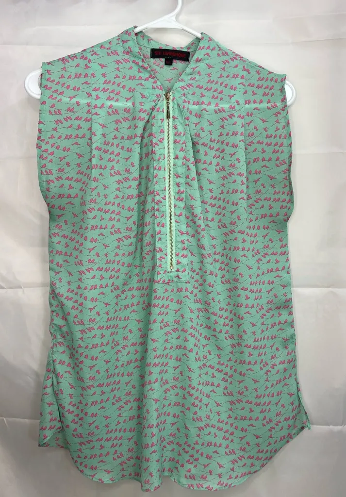 SM Wardrobe women’s turquoise pink sleeveless sheer half zip blouse summer No material tag Size smal... Show more