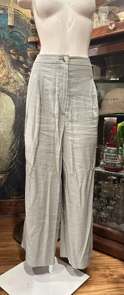 Sophisticated wide-leg trousers in a light green shade. Ideal for versatile styling.