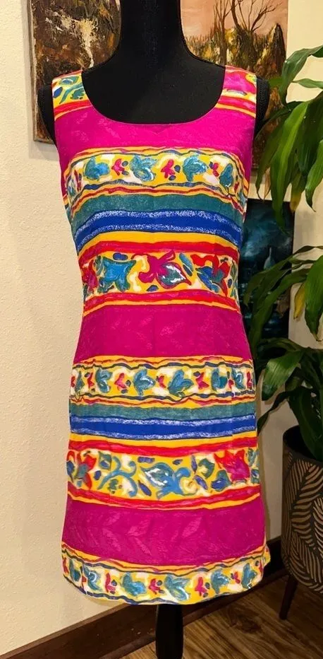 EUC VINTAGE 1990’s Jessica Howard multicolors stripe mini dress sz 8 Pink - $25 - From Francesca