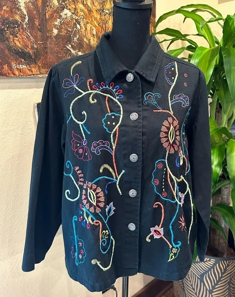 EUC VINTAGE WHITE STAG BLACK WITH MULTICOLOR EMBROIDERY MOTIVE FROT SZ 36/38 Size L - $40 - From Francesca