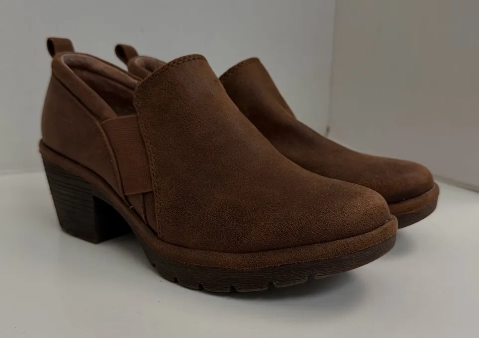 The Eurosoft Temira boot is a comfortable and versatile ankle boot designed for everyday wear. It features a pull-on style with goring for a flexible fit and a microfiber comfort footbed for plush cushioning. These shoes offer a sleek design with a sturdy heel, ideal for all-day wear. In very good condition. Little to no signs of use. No wear. No rips,tears,holes, or stains. Color: Brown Cognac Size: 8