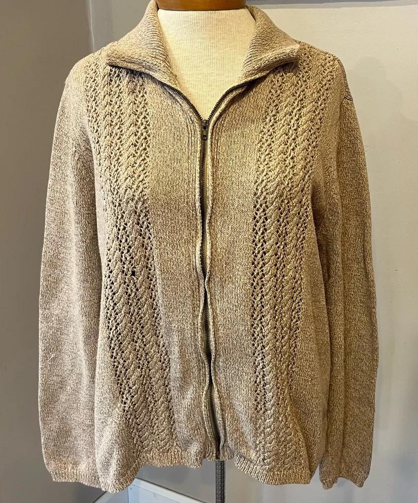 Evan-Picone Tan Long Sleeve 100% Cotton Zip Up Sweater Women’s Size XL - $13 - From Larissa