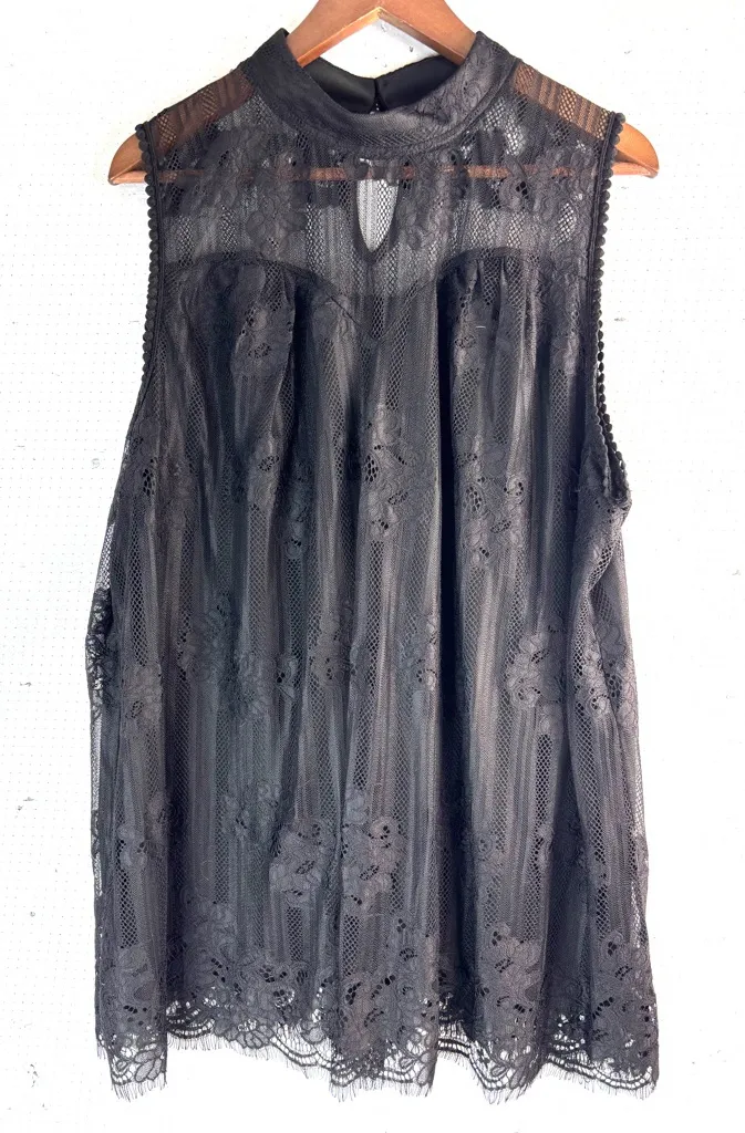 Eve & Maddie 2X Fairygoth High Neck Sleeveless Lace Top in Black - $29 - From Bestbargain