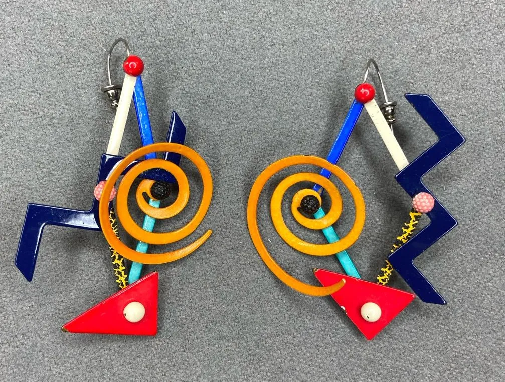 Vintage Eve Kaplin Memphis style Mechanical Earrings These earrings feature articulated moving part... Show more
