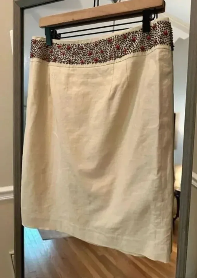 Evelyn skirt‎ LINEN Rayon Beige beadded Natural Skirt Red Size 8 - $40 - From Froliqie