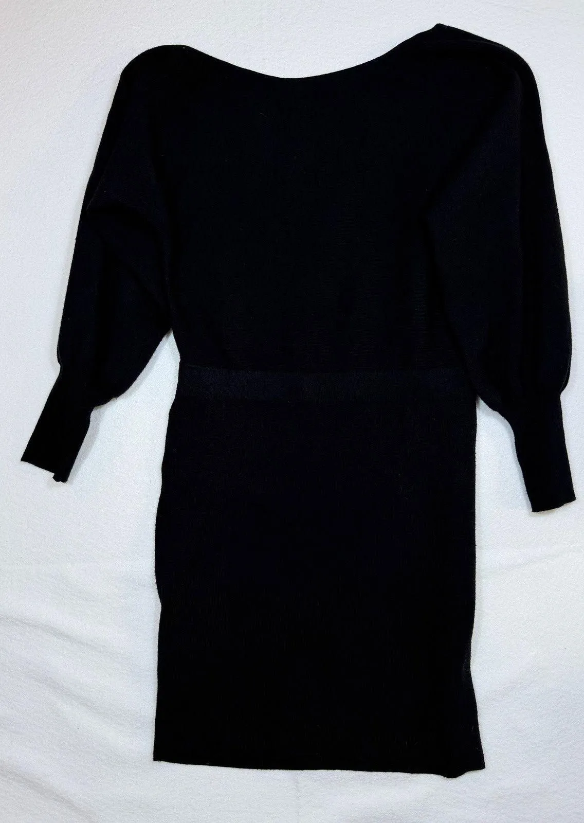 Embrace sophisticated comfort with this EVEREVE black ribbed sweater dress. The elegant boat neckline beautifully frames your décolletage, while the voluminous balloon sleeves add a touch of drama and chic style. A flattering ribbed waistband cinches your silhouette, leading to a sleek mini skirt that offers a modern, polished look. Measurements: • Bust: 19 in • Length: 36 in Style: Sweater Dress, Bodycon Dress Length: Knee Length Department: Women Sleeve Length: Long Sleeve Pattern: Solid Occasion: Casual, Party/Cocktail Material: Viscose, Nylon, Polyester Fabric Type: Knit Neckline: Boat Neck Season: Fall, Winter Sleeve Type: Balloon Sleeve Closure: Pullover Features: Belted Keywords: Evereve, sweater dress, black dress, knit dress, balloon sleeve, mini dress, ribbed, boat neck, sophisticated, chic, elegant, fall fashion, winter style, cozy