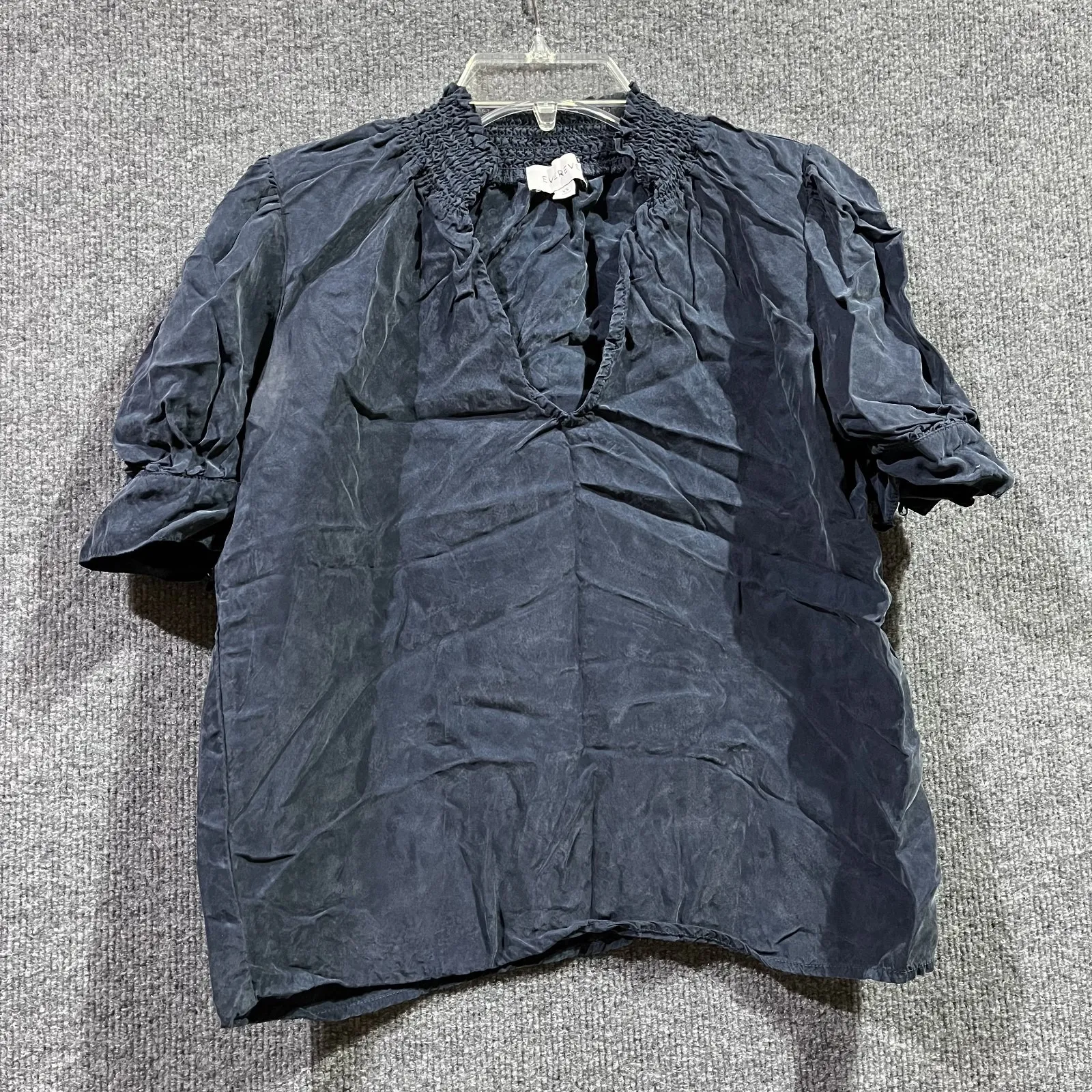 Evereve Blouse Womens XS Navy Short Sleeve Smocked Split Neck Outdoor Wear Blue - $22 - From Allison