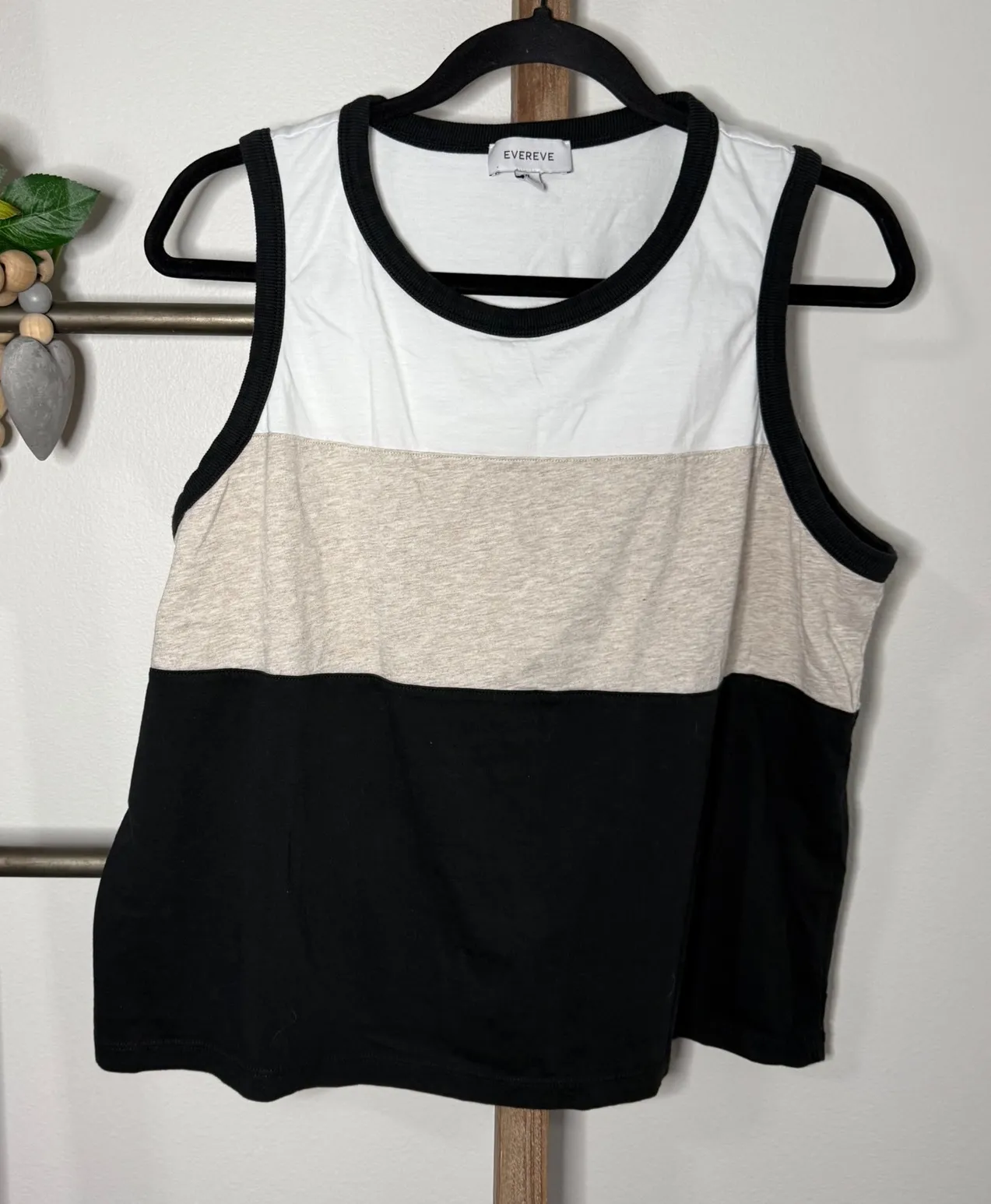 Evereve colorblock tank top in white tan and black. This sleeveless top features a classic crew neckline and a flattering colorblock design. Perfect for casual outings or layering under a jacket for a chic look. Size X Large This is in great pre owned condition See pictures for measurements Keywords: Evereve, sleeveless, colorblock, tank, casual, layering, chic, summer, basic, minimalist, streetwear, athleisure *Thank you for shopping my closet *Same or Next Day Shipping *Smoke Free Home *Offers Welcomed