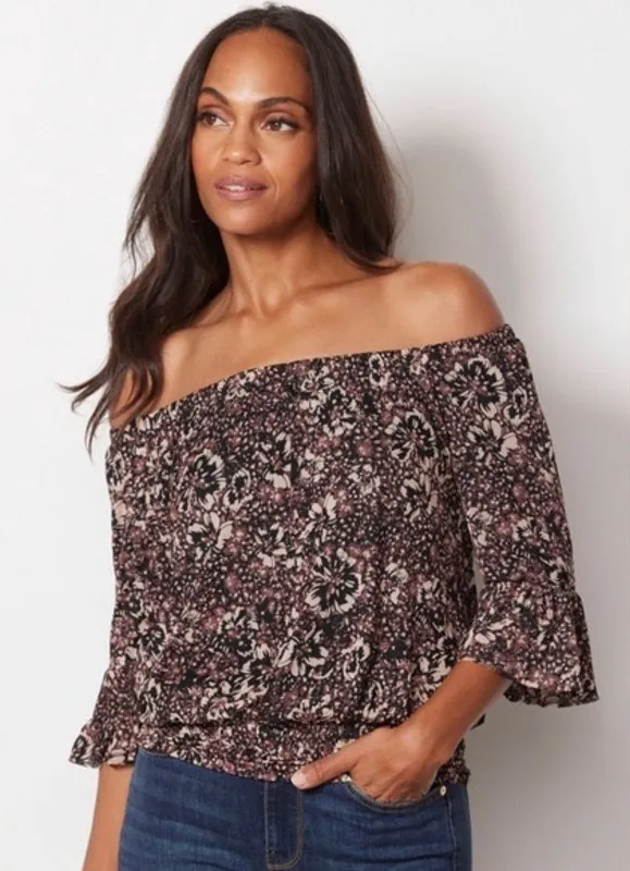 Size: Extra Small Color: dark purple brown Condition: Preowned In good condition Features: Smocked Off shoulder Fine mesh Stretchy Dark florals Moody Grunge Fine mesh Off shoulder style Fairycore