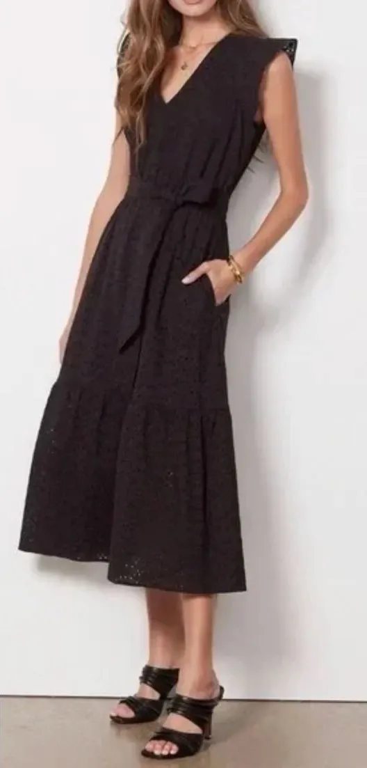 Evereve Elora Eyelet Midi Dress Black Sleeveless Size Small In Great preowned condition. Upon resea... Show more