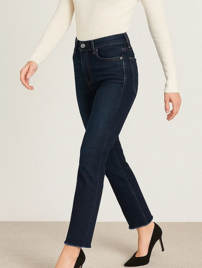 Style: Straight Color: Blue Department: Women Type: Jeans Fabric Wash: Dark Features: High Rise, Raw... Show more