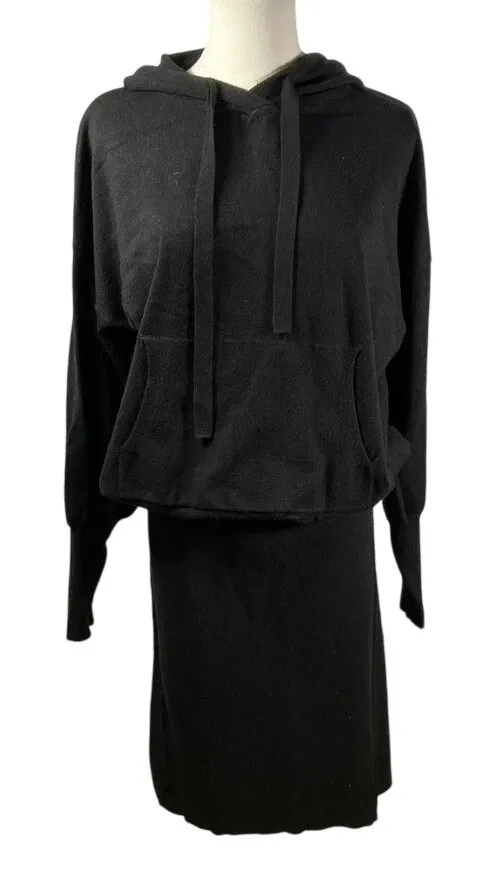 Evereve Women's Black Knit Hoodie Sweater Dress Size L Loungewear Casual Measurements: • Pit to pit... Show more