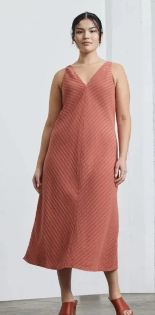 Everlane NWT Pink Colored City Striped Sleeveless V-neck Midi Dress - Everlane The city striped midi dress in the color redwood. This is a beautiful dress in a really beautiful color. The stripes are made from 2 different materials. Could be worn multiple seasons and would be cute paired with a sweater and boots for the cooler months. Great brand and great quality. Dusty rose/peach/rust hue. Ideal for elegant occasions. Retailed for $148.00. Sold out online. Dress tags - Church, summer, destination wedding, modest, event, graduation, travel, holiday, feminine, Christmas, grandma, bohemian, granola, resortwear, party, birthday, date night, boho, cottagecore, floral, tropical vacation, resort, flowy, casual, office, professional, Valentine's day, cottage, coastal grandma, resortwear, fairy, floral, girly style, preppy fashion, hippie, western vibe, European, Quiet luxury, granola girl aesthetic, prairiecore, lagenlook, crunchy mom, sustainable, academic, fall, distressed, layered look, vintage-inspired, Y2K fashion, bohemian style, outdoor activities, nature-inspired, minimalist, unassuming.