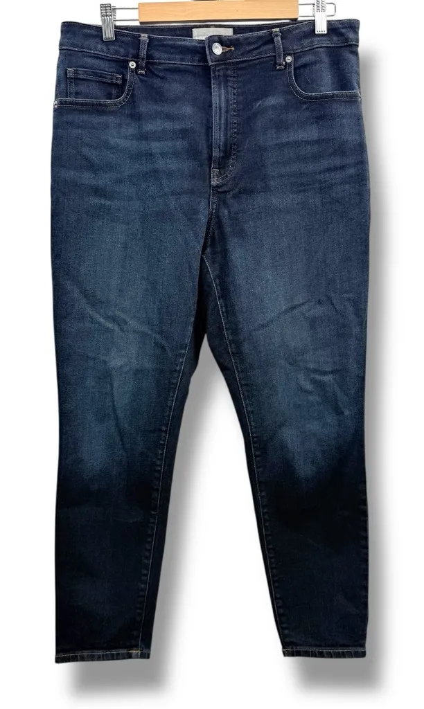 Everlane The Curvy High Rise Dark Wash Cropped Skinny Jeans Designed specifically for hourglass figures, these jeans offer a contoured fit through the hip and thigh with a high-rise waist that accentuates your natural curves. The dark wash adds a sleek, polished look that easily transitions from day to night, while the cropped length gives them a modern, on-trend edge. Crafted from premium stretch denim, these jeans provide the perfect balance of comfort and structure. They hug your body in all the right places without losing their shape throughout the day. The high waist creates a smoothing effect, making them ideal for pairing with everything from tucked-in blouses to cropped sweaters or casual tees. If you’re looking for everyday denim with a curve-friendly fit and elevated design, these Everlane skinny jeans are a must-have. Whether you're dressing them up with heels or keeping it casual with sneakers, they offer endless styling possibilities while keeping your look effortlessly chic. High rise Cropped length (approx. 26.5" inseam) Skinny leg Dark wash Whiskering Intentional fading 5-pocket styling Belt loops Zip fly and button fly closure Cotton / elasterell / elastane Size: 33 Measurements are provided in pictures Condition: Excellent, just has discoloration on back tag tags: casual friday weekend outing brunch date night errands coffee run everyday wear casual office school drop-off travel sightseeing city stroll shopping lunch date laid-back style minimalist