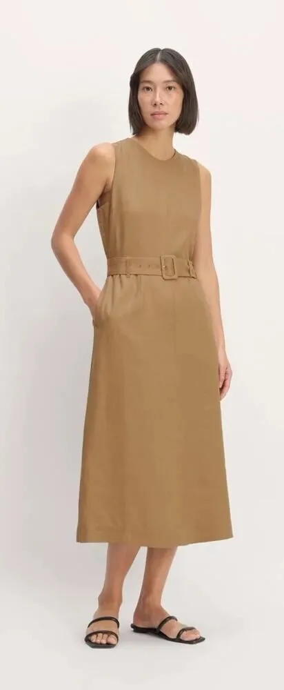Everlane The Linen Belted Midi Dress 8 Tan Flax Minimalist Quiet Luxury Elegant This piece features... Show more