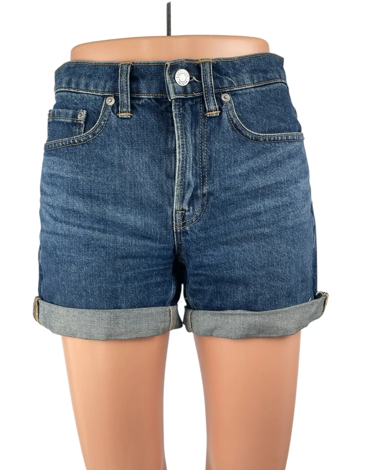 Size: 24 Condition: Like New Inseam: 4” (6”) Rise: 9” Waist: 28” *Measurements are taken lying flat... Show more