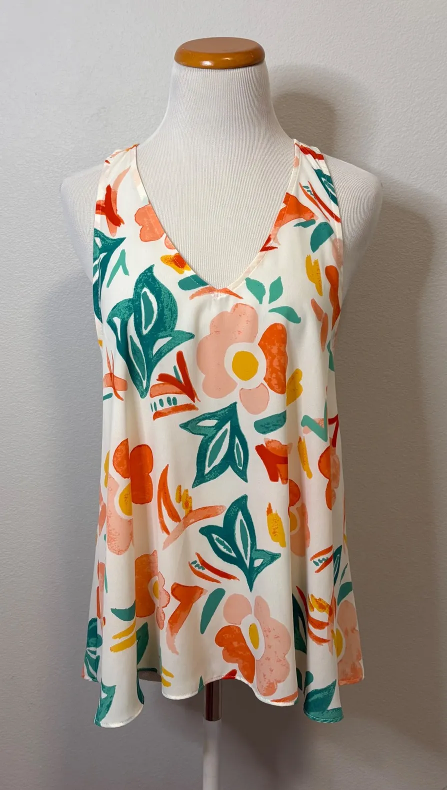 Everly Floral Tank Top Sleeveless Casual Summer Blouse White Orange Large Brushstrokes of summer co... Show more