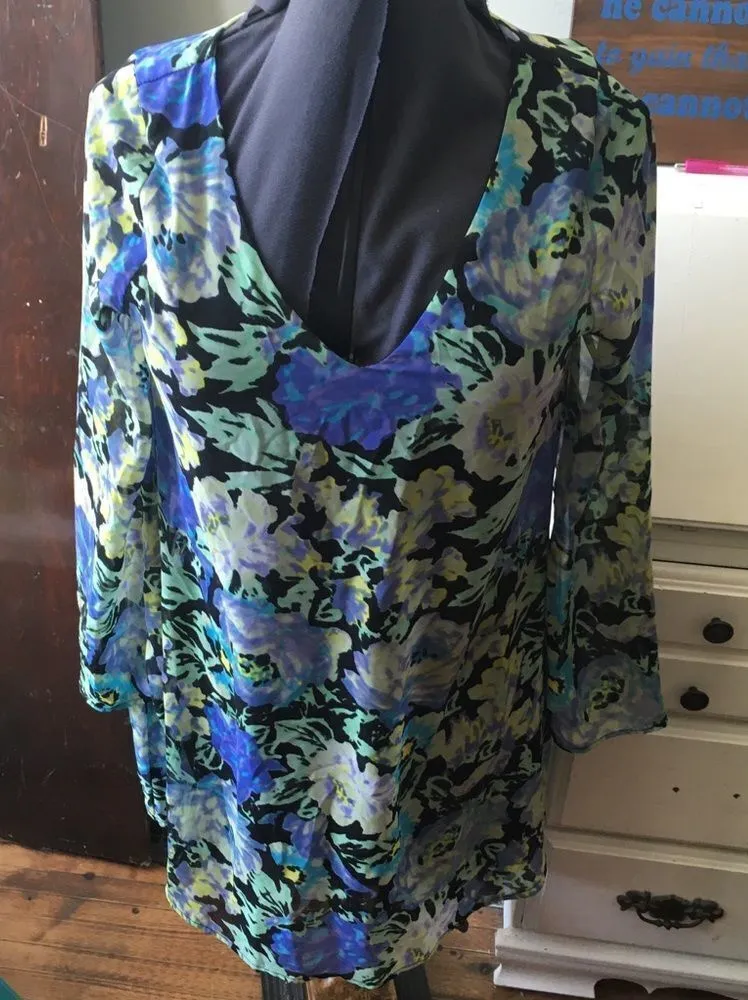Every flowy, colorful, floral, v-neck, minidress. Wear as a tunic with leggings or on its own. In go... Show more