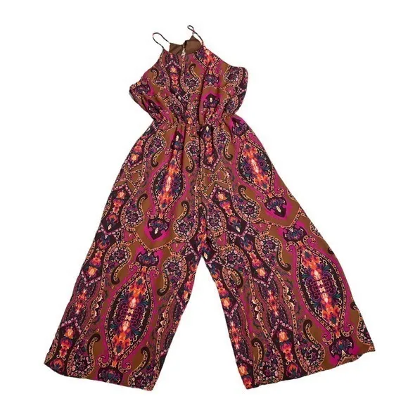 Everly Womens Pants Jumpsuit S Brown Purple Sleeveless Open Back Wide Leg Cropped. This jumpsuit is... Show more