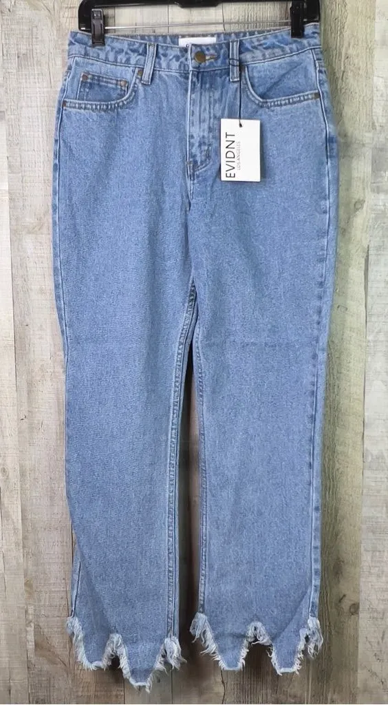 Raw Hem shaped V style 5 Pockets Belt Loops Button & Zipper Closure Blue Denim Relaxed Size: 26 Waist: 14-1/2” Measurements are done laid flat Front Rise: 11” Back Rise: 15” Inseam: 28” Pant Leg Opening: 7-1/1” New With Tags Excellent Condition #8239 1 lb. 8 ozs. Please Note: Different Colors may appear in different shades on various monitors/devices. If you are unsure or concerned about the color, Please Ask. I do the measurements on each item and I try to be very accurate. If you have any questions please ask! I am here to help you make a decision on your selection. Thank You again for looking!