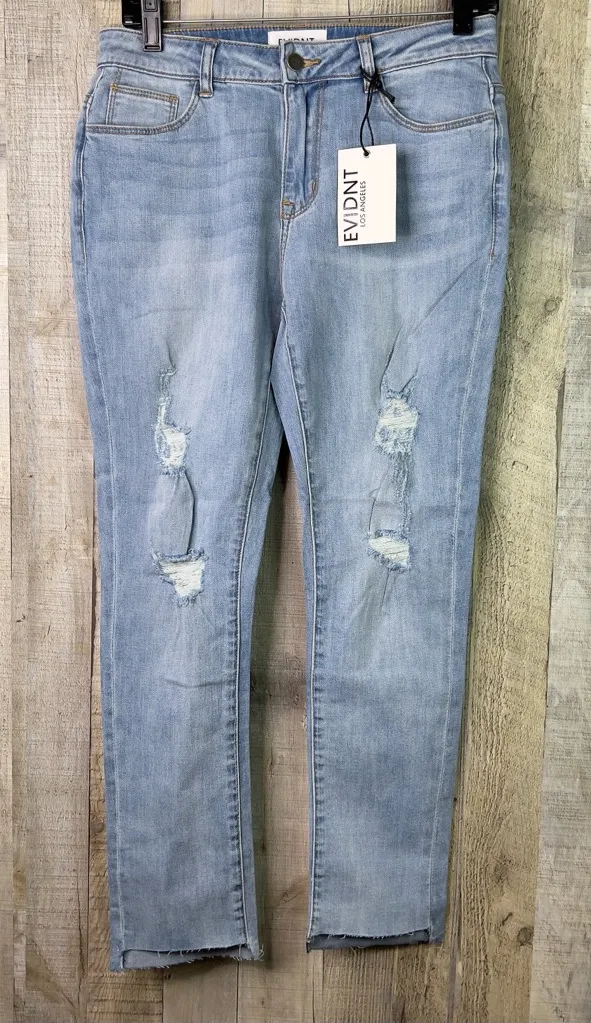 Blue Denim 5 Pockets Belt Loops Button & Zipper Closure Distressed Holes do show the skin Size: 27 Waist: 14-1/2” Measurements are done laid flat Front Rise: 10” Back Rise: 14” Inseam: 27” Pant Leg Opening: 6” New With Tags Excellent Condition #8235 1 lb. Please Note: Different Colors may appear in different shades on various monitors/devices. If you are unsure or concerned about the color, Please Ask. I do the measurements on each item and I try to be very accurate. If you have any questions please ask! I am here to help you make a decision on your selection. Thank You again for looking!