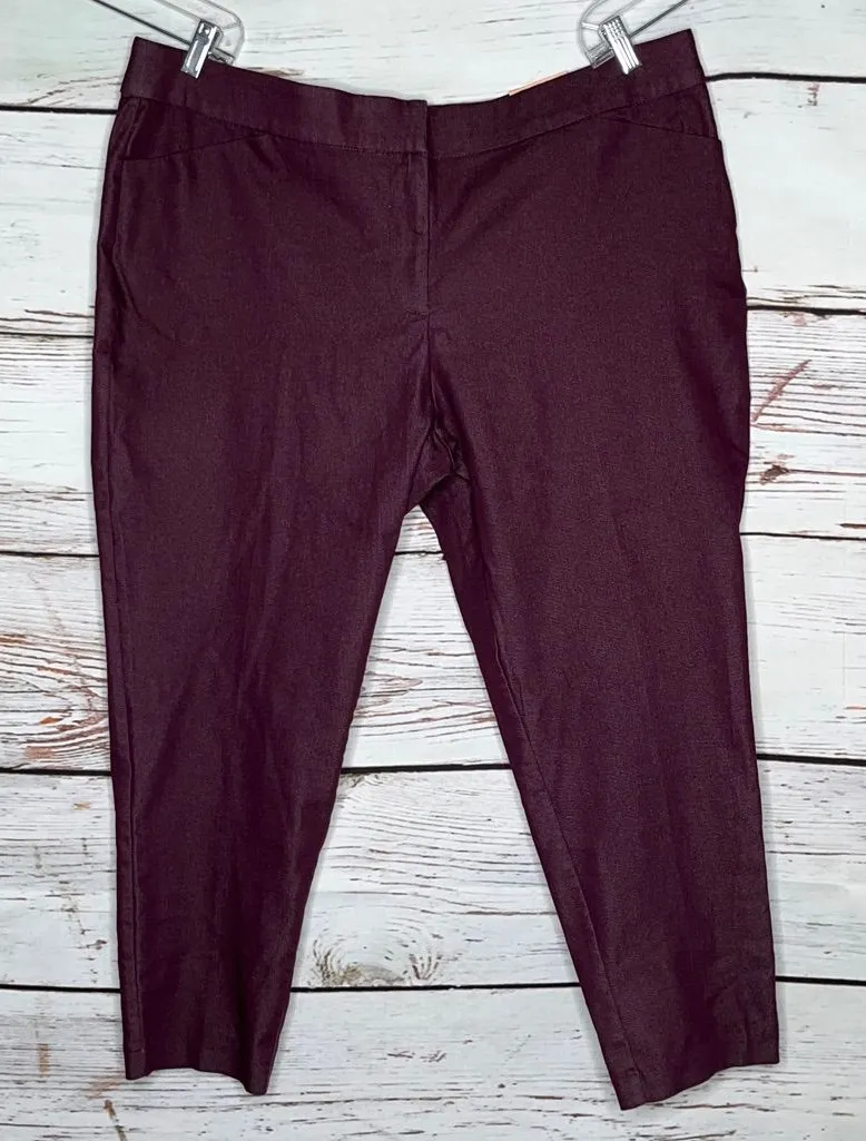 EVRI Women’s Plus Size 20W Purple Mid Rise Ankle Pants. Elastic Waistband. Button, 2 Clasps & Zipper... Show more