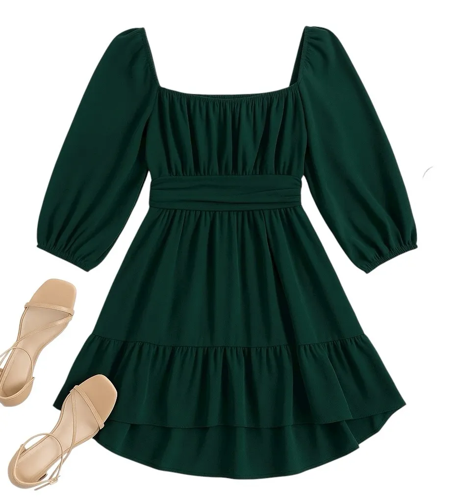 Exlura Green Square Neck Long Sleeve High Low Layered Hem Dress XL Exlura green dress with square n... Show more