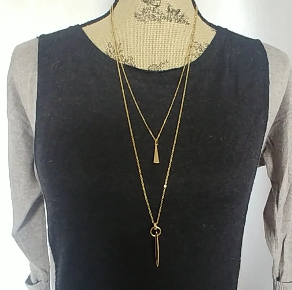 Women's Goldtone 2 tier necklace Chains measures 20" and 30" Each chain has a geometric pendant Pre... Show more