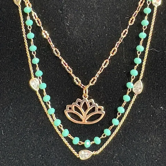 Express Layered Lotus Bracelet – NWT on Card Gorgeous gold-toned layered necklace from Express featu... Show more