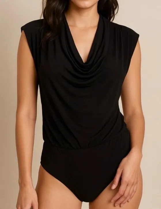 Express Black Cowl Neck Shoulder Pads Sleeveless Bodysuit XS X-Small This bodysuit is in excellent... Show more