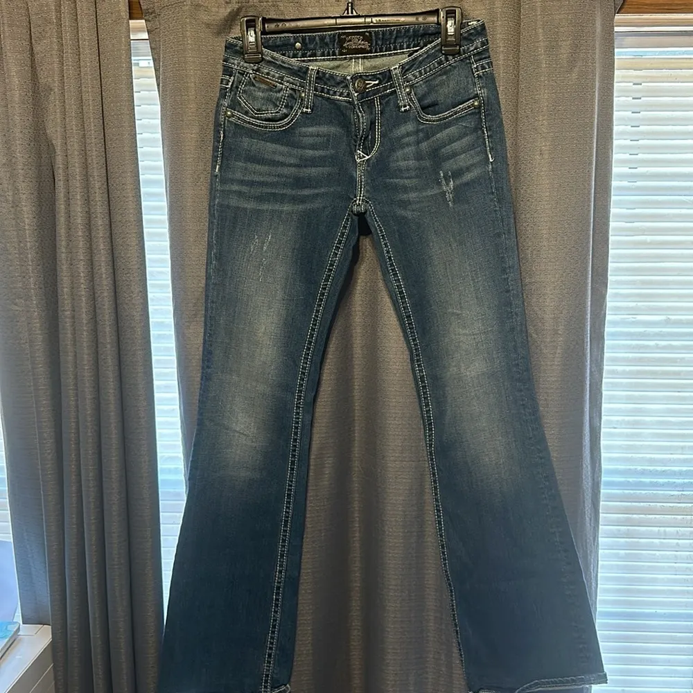 These Express jeans offer a timeless boot cut silhouette in a versatile blue hue, perfect for any ca... Show more