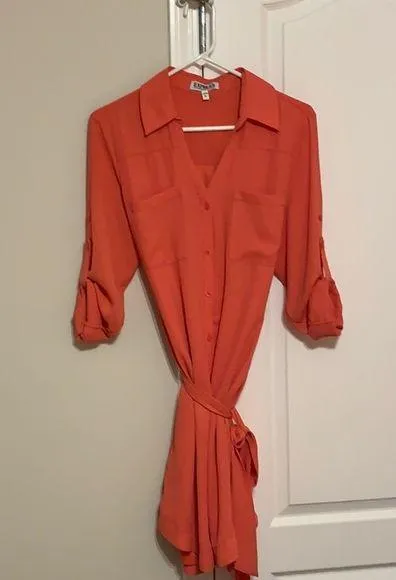 Express button up silk dress Orange Size L - $34 - From Avery