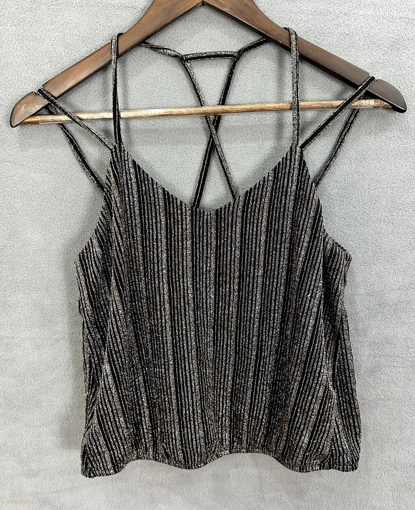 Express Crop Top Womens XS Black Shimmer Metallic Strappy Glam Party Boho Y2K used condition with n... Show more