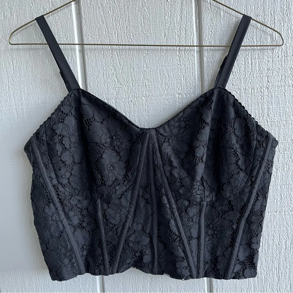 Give your wardrobe a little dark romance with this Express black lace corset top, perfect for fairyc... Show more