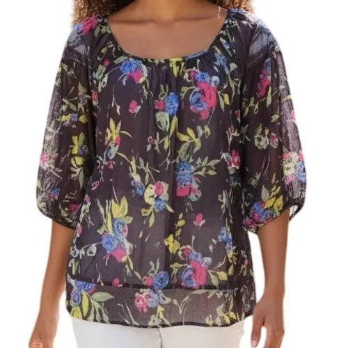 BRAND NEW WITHOUT TAGS Scoop Neck Belled Short Sleeves With Banded Hem Wide Banded Bottom Hem Semi-... Show more
