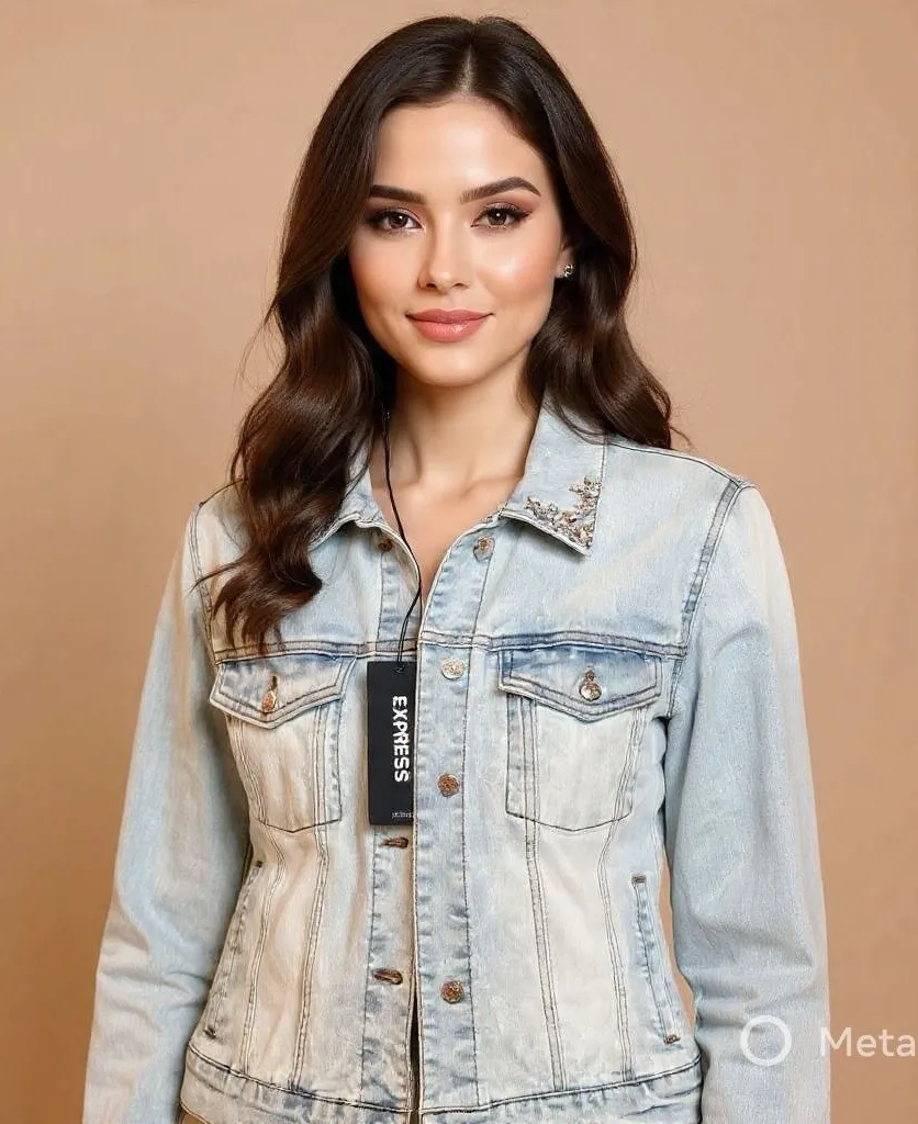 Chic denim jacket in a soft blue hue. Ideal for everyday wear. Beautiful collar stones colla 72.2... Show more