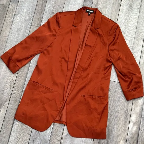 EXPRESS Havana Brown SATIN PEAK LAPEL BOYFRIEND BLAZER Jacket 3/4 Sleeve Size M - $65 - From Crystal