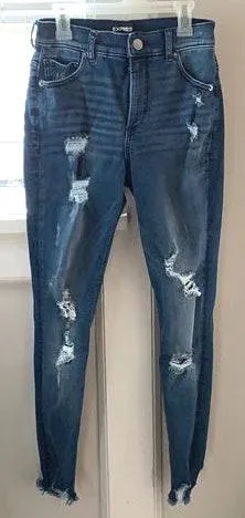 EXPRESS High Waisted Distressed Jeans Blue Size 2 - $12 (86% Off Retail) - From Courtney