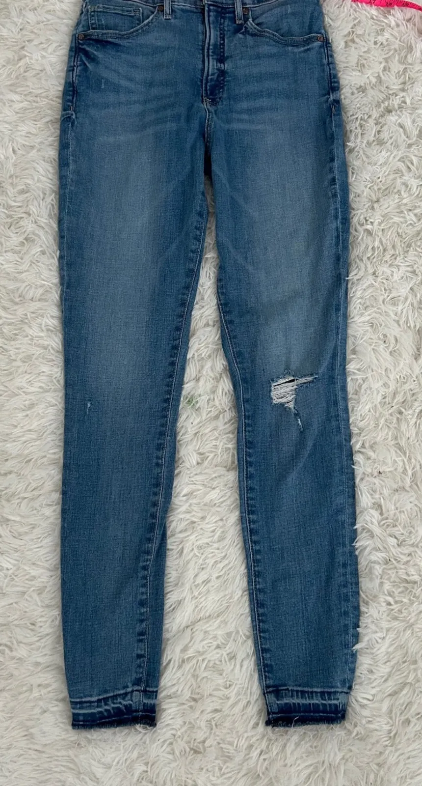 Keywords: Express jeans, high waisted jeans, skinny jeans, ripped jeans, distressed jeans, frayed hem jeans, light wash jeans, size 2 jeans, women's jeans, denim jeans,
