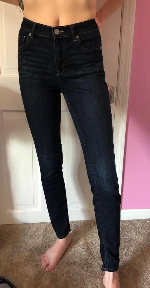 Size 4 dark denim EXPRESS jeans! These are the high rise jeggings, they’re super comfy and practical... Show more