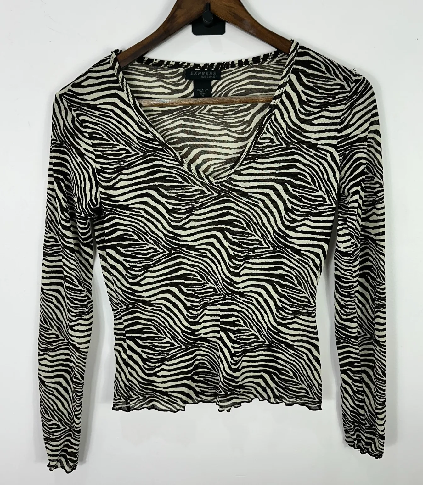 Express Mesh Top S Y2K Indie Sleaze Zebra Print Sheer 90s Animal Print Grunge